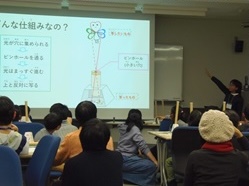 冬のほしぞら教室を開催しました。12月21日土曜日 イベント冬のほしぞら教室を開催しました。 生憎の空模様ではありましたが、日食の話や日食ウォッチャー作りはとても盛り上がりました。 望遠鏡では星の代わりに、会場の窓に貼った写真を見ていただきました。