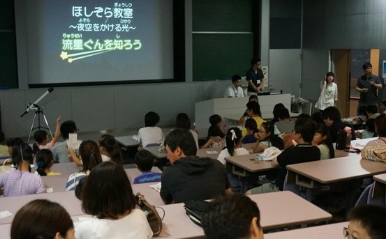 ほしぞら教室「夜空をかける光」を開催しました。7月29日土曜日 イベントほしぞら教室「夜空をかける光」を開催しました。50名の子どもたちの参加があり大好評でした!! 教室では、流星群についてのお話や、プラバンでキーホルダーを作る工作を行いました。 また天体観測では、望遠鏡を使い、月や星を観察しました。