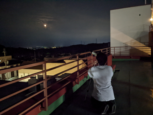 鹿ノ台納涼祭にて天体観測を行いました! あいにくの天気でしたが、途中から奇跡的に雲の切れ間から月が見えました